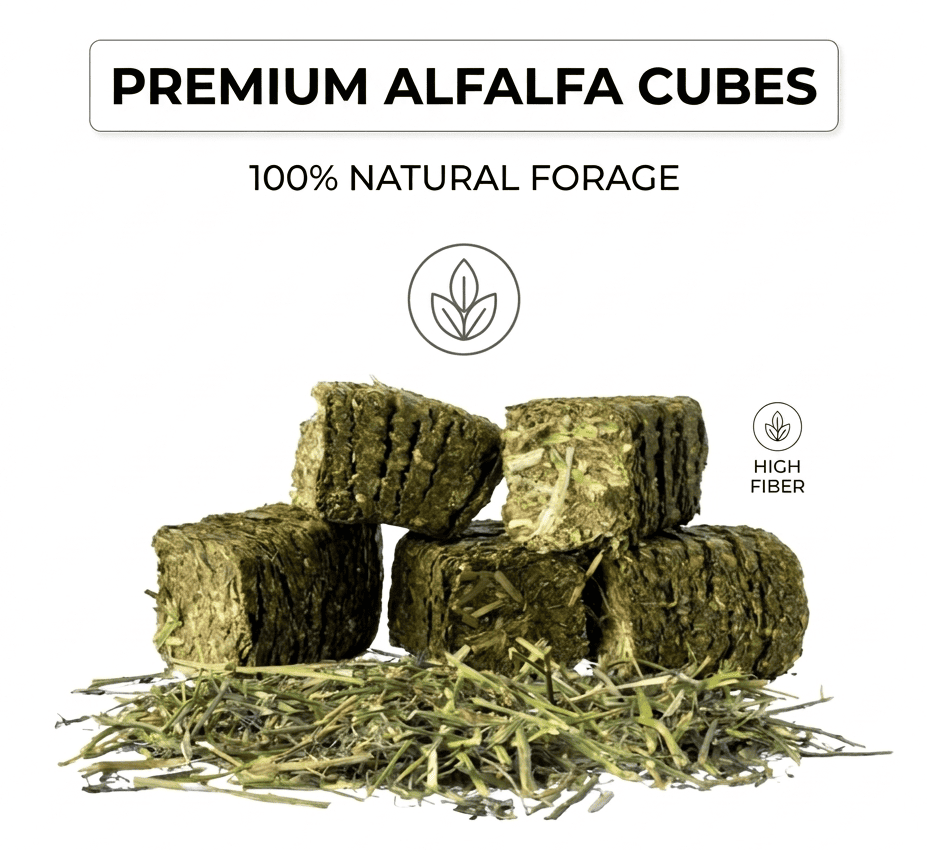 *קוביות אספסת אלה מתאימים לכל סוגי הסוסים ומספקים חלבונים איכותיים המסייעים בשיפור מצב השרירים.
